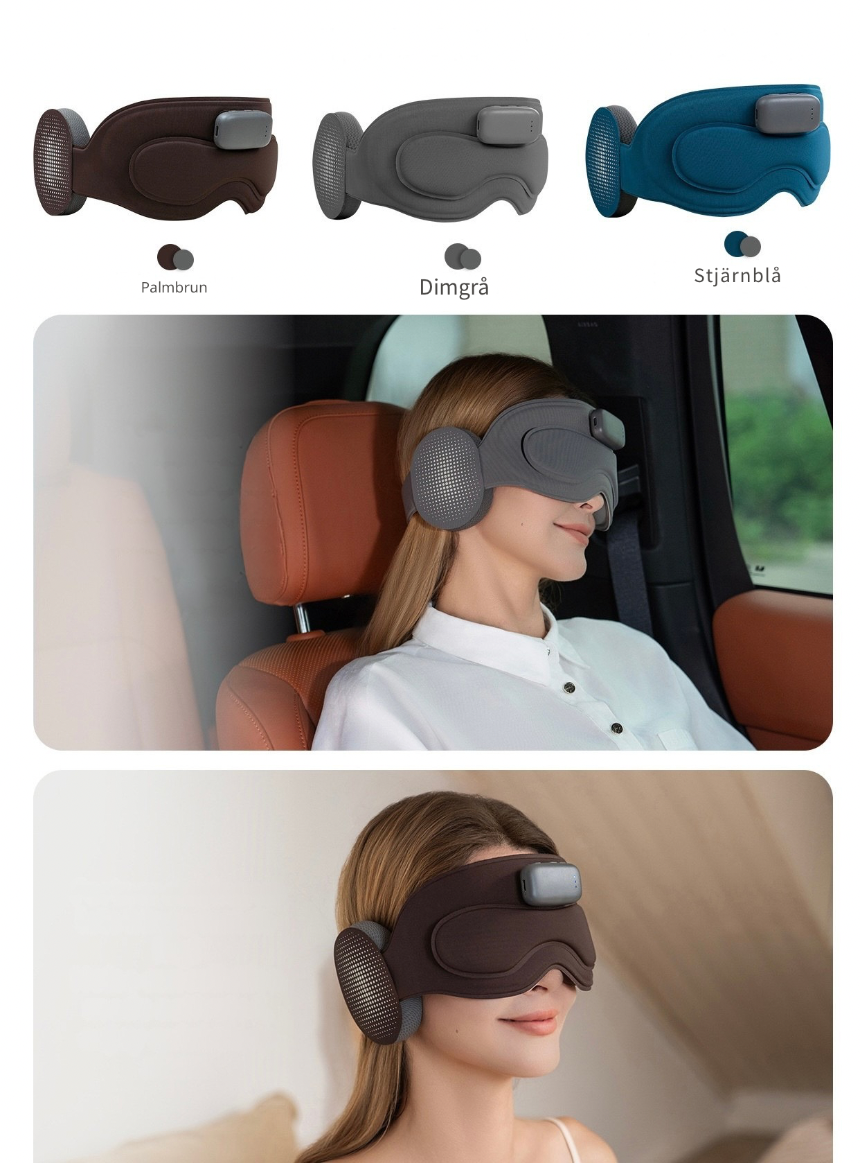 Förvandla varje resa till en förstaklassupplevelse med Lyxsömn™. På flygplan, höghastighetståg eller under sena binge watching kvällar får du fullständig isolering från ljud och ljus för ostörd vila. Aktivera brusreducering för att sova lugnt medan din partner är vaken, eller koppla av i stil. Finns i Palmbrun, Dimgrå, Stjärnblå och Lila, Lyxsömn™ kombinerar lyxig komfort med högestetisk design och gör varje resa och vila elegant och njutbar.
